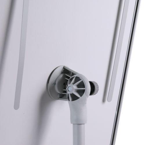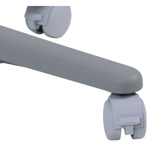 Tablica magnetyczna z regulowaną wysokością i kątem nachylenia. Zacisk do zamocowania papieru. Stabilna podstawa jezdna z pięcioma kółkami wyposażonymi w blokadę. Na całej długości półka do odkładania markerów.