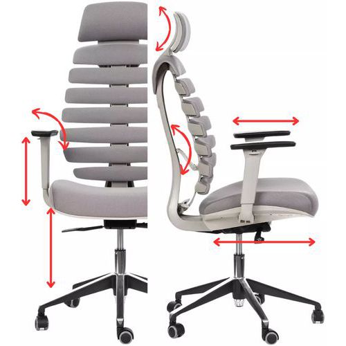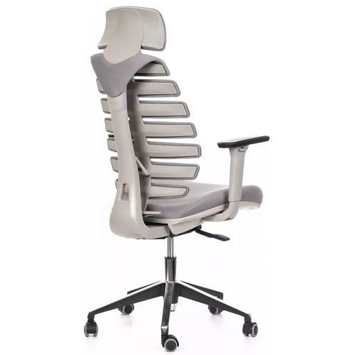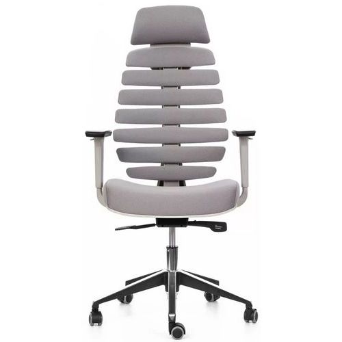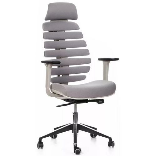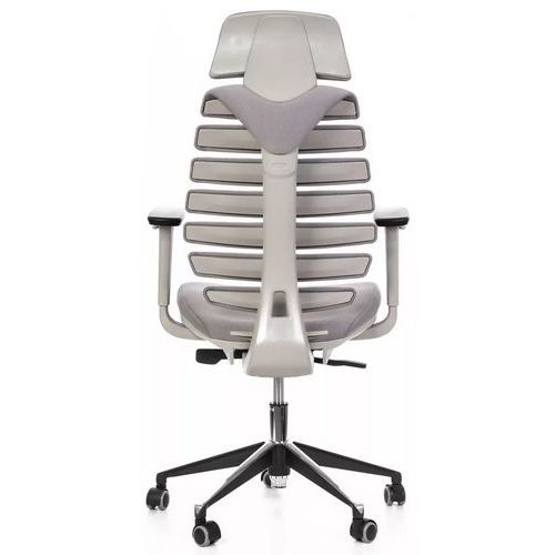 Fotel biurowy Fish Bones z zagłówkiem, konstrukcja w kolorze szarym.