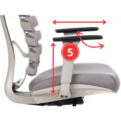 W zestawie zagłówek z regulacją wysokości i podłokietniki z regulacją 3D o miękkim w dotyku pokryciu.