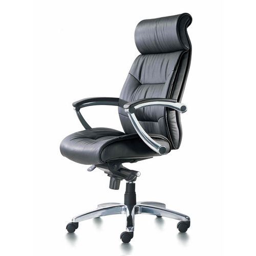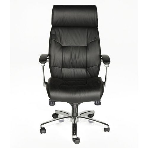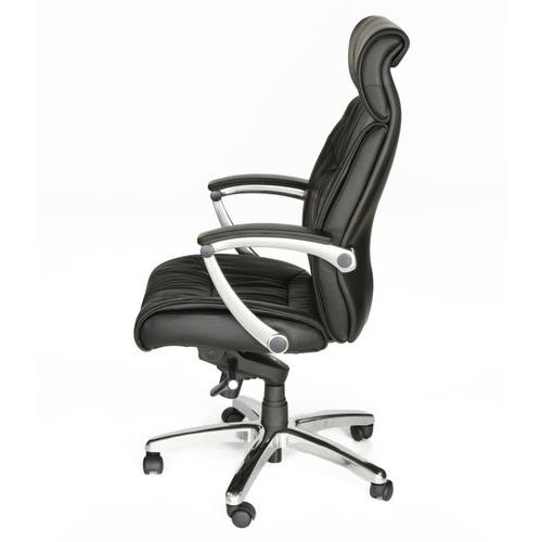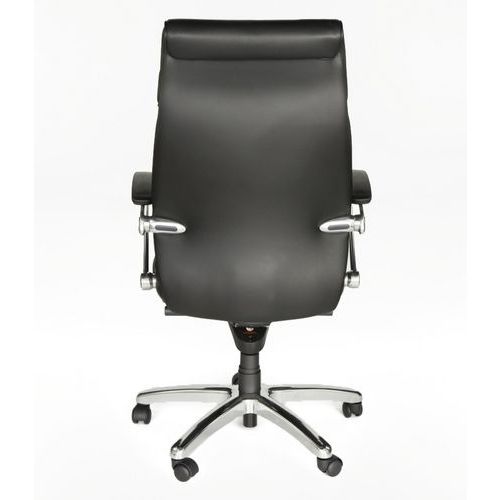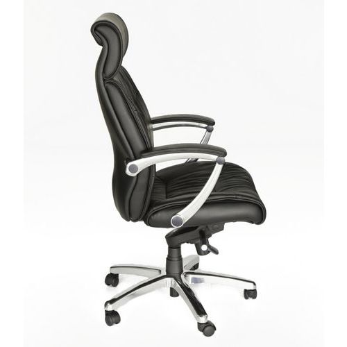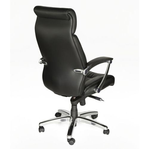 - Fotel na kółkach do biura, w czarnym skórzanym wykończeniu.