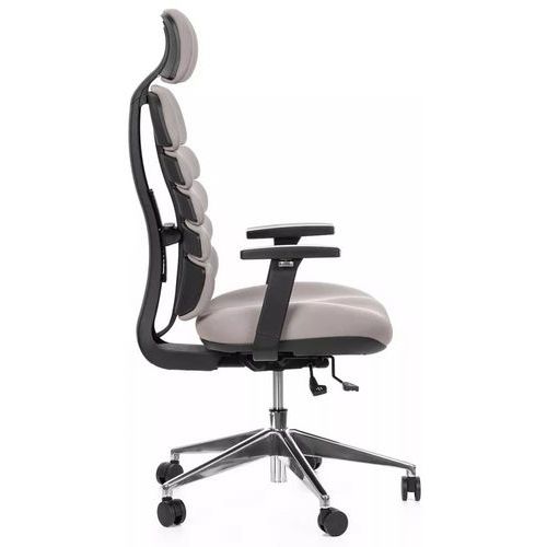 Fotel posiada regulowany zagłówek, który zapewnia należyte podparcie kręgosłupa szyjnego.