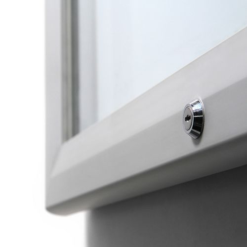 Gabloty magnetyczne ze srebrną aluminiową ramą, przeznaczone do obszarów zewnętrznych. Lakierowana ściana tylna umożliwia zapisywanie specjalnym markerem. Gablota jest zamykana na klucz. Bezpieczne szkło ESG o szerokości 4 mm. Szkło ESG: Chodzi tu o specjalne bezpieczne szkło hartowane, które jest używane np. jako wypełnienie do drzwi bądź okien samochodów. Wyprodukowany w UE
