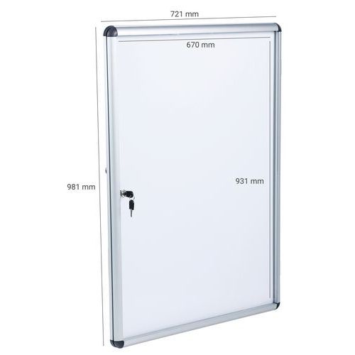 Gabloty magnetyczne wyposażone w ramę owalną, przeznaczone do stosowania w warunkach wewnętrznych. Akrylowe drzwiczki i lakierowana tylna ściana magnetyczna. Gabloty można zamknąć na klucz, otwierane od boku. Ściana tylna o powierzchni suchościeralnej.
