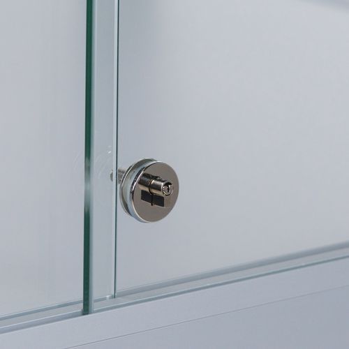 Stolikowa gablota wystawowa do prezentacji produktów. Przeszklona szkłem hartowanym. Drzwi przesuwne zamykane na zamek cylindryczny. Chromowane nogi ze stopkami regulacyjnymi. Wysokość części szklanej: 298 mm. Wysokość nóg: 622 mm. Maks. obciążenie półki (kg) : 8 kg