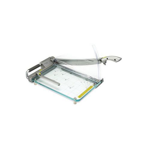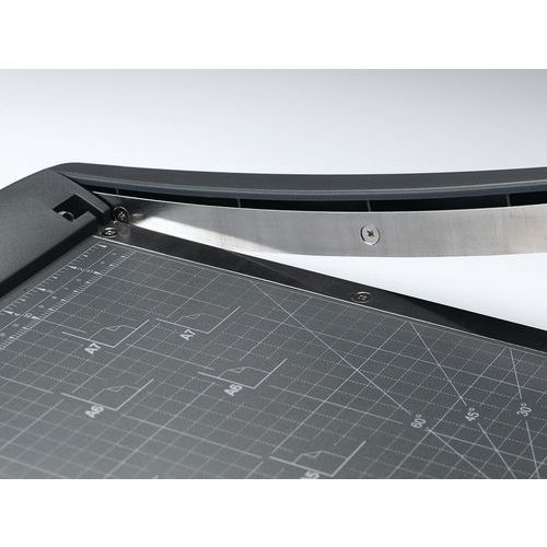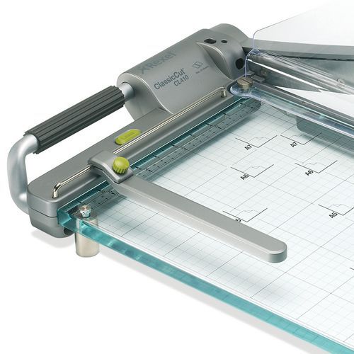 - posiada poręczną podstawę z liniami siatki i prowadnice papieru dla zapewnienia precyzyjnego cięcia