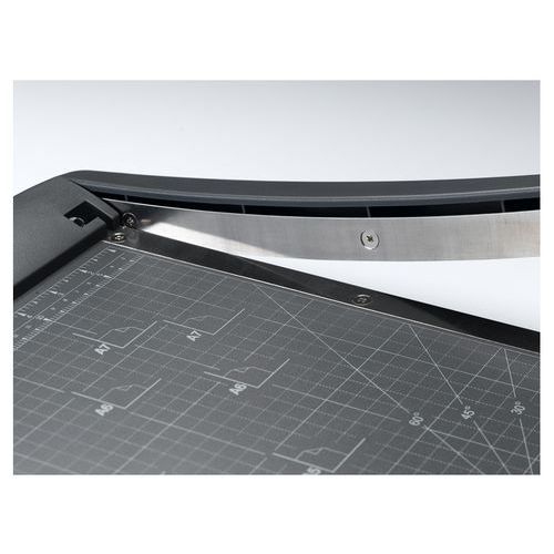 - Ostrze jest samo ostrzące, wykonane ze specjalnej, wysoce odpornej hartowanej stali o długiej żywotności w celu zapewnienia gładkiego cięcia nawet przy cięciu większej ilości kartek