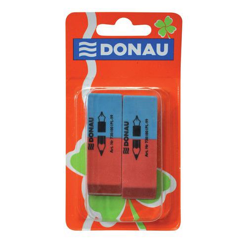 Gumka wielofunkcyjna DONAU, 57x19x8mm, 2szt., niebiesko-czerwona