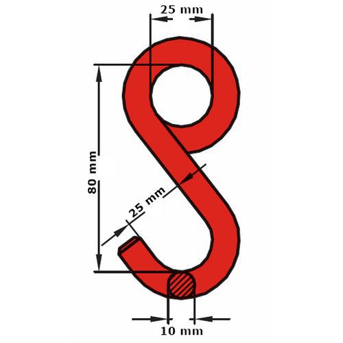 Hak w kształcie litery S o dużej wytrzymałości, nośność 300 kg, zamknięty