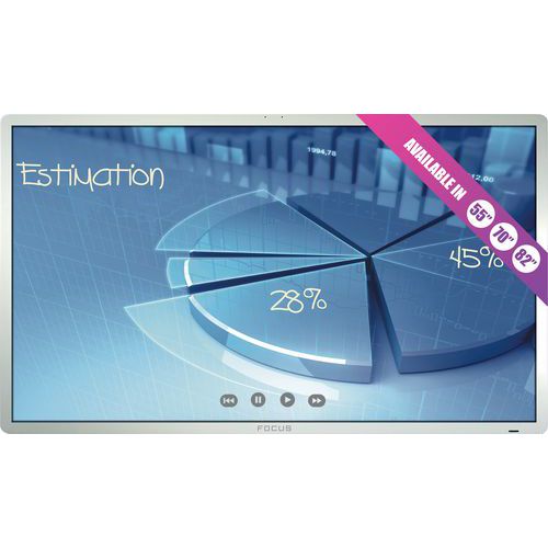 - 50-calowa cyfrowa rama ścienna wyróżnia się stylowym, bezramowym designem, który pozwala na tworzenie przyciągających wzrok prezentacji.