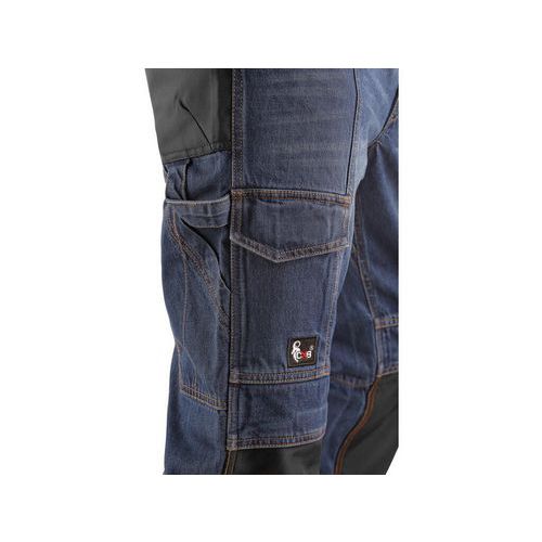Jeansy męskie, pas ze szlufkami i plastikową zawieszką, w pasie wewnętrzna gumka antypoślizgowa, 2 kieszenie z przodu, 2 kieszenie z tyłu wykonane z materiału CORDURA, boczne kieszenie wielofunkcyjne, pętelka na młotek w prawej kieszeni, kolana wzmocnione materiałem CORDURA z możliwością włożenia nakolanników. Materiał wierzchni: denim 100% bawełna Rozmiar: 46-62