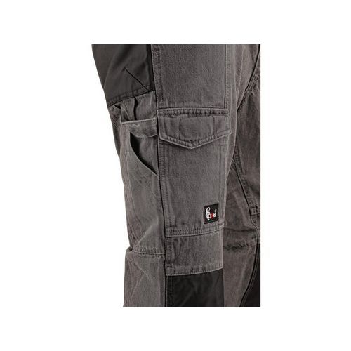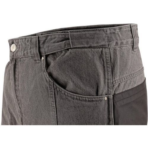 Jeansy męskie, elastyczny pas ze szlufkami i plastikową zawieszką, w pasie wewnętrzna gumka antypoślizgowa, 2 kieszenie z przodu, 2 kieszenie z tyłu wykonane z materiału CORDURA, boczne kieszenie wielofunkcyjne, pętelka na młotek w prawej kieszeni, kolana wzmocnione materiałem CORDURA. Materiał wierzchni: 100% bawełniany denim, 370 g/m2 Rozmiar: 46-62