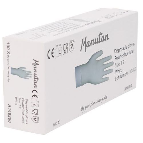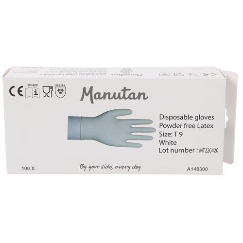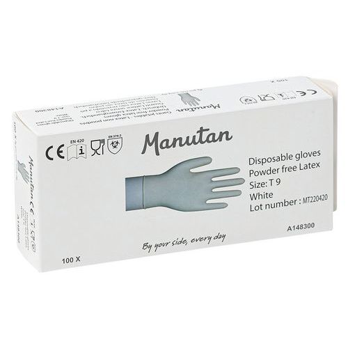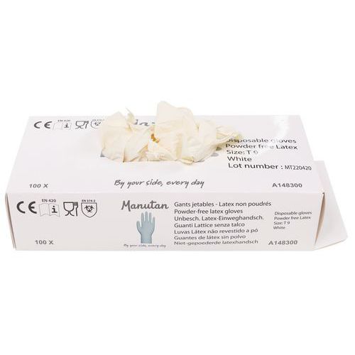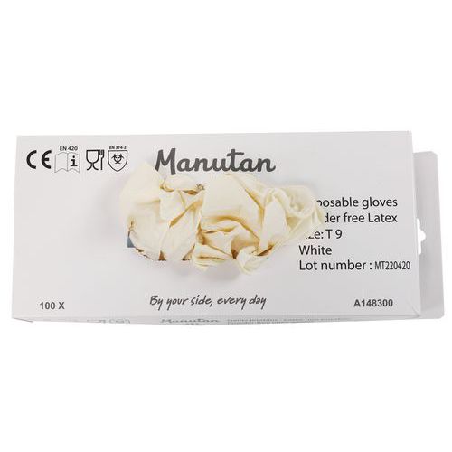 Jednorazowe rękawice lateksowe Manutan Expert, białe