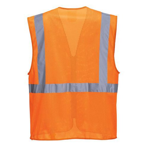 Zaawansowana technologia MeshAir zapewnia użytkownikom tego produktu komfort w ciepłe dni. Tkanina MeshAir z której wykonano kamizelkę jest w pełni zgodna z normą EN ISO 20471.Produkt ten posiada liczne kieszenie uchwyt ID uchwyt na radio oraz zapięcie na zamek błyskawiczny. Certyfikowano na zgodność z CE Podwójny zaczep na ID Zaczep na radio Taśma ostrzegawcza Zapięcie z przodu na zamek błyskawiczny Kieszeń na telefon i długopis Zaczep D z przodu 7 kieszeni Chłodzący materiał siatkowy Dwie dolne naszyte kieszenie Pełna zgodność z brytyjską normą kolejową RIS 3279-TOM (jedynie kolor pomarańczowy) Pełna zgodność z EN ISO 20471