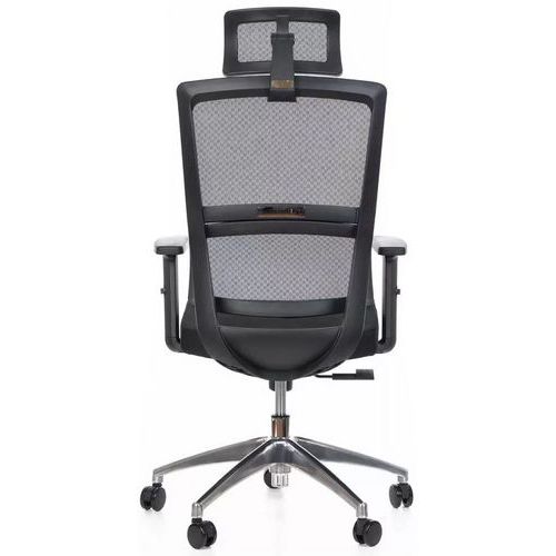 - Krzesło biurowe z wysokim oparciem zapewniającym podparcie dla całych pleców.