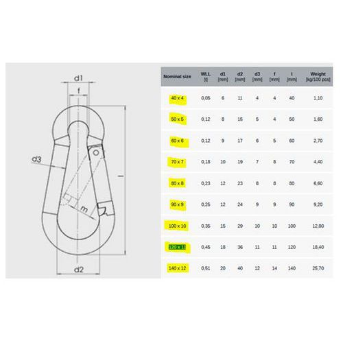 - Karabinki strażackie z ocynkowaną powierzchnią.