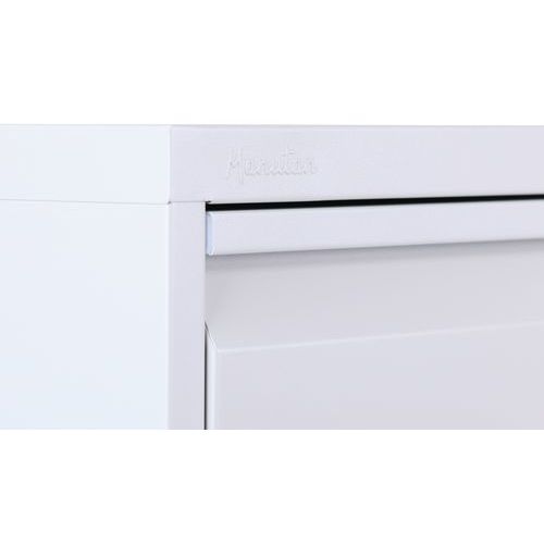 Kartoteki na teczki zawieszane formatu A4 folio. Zabezpieczenie przed wysunięciem dwóch lub większej liczby szuflad naraz. Szuflady ze 100% wysuwem wyposażone w standardowe dno. Uchwyt w szufladach można przystosować do szerokości teczki zawieszanej. Zamek centralny.