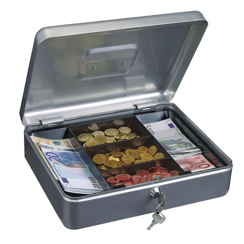 - Kasetka na pieniądze z uchwytem w pokrywie schowka. Prosta obsługa i zamykanie.