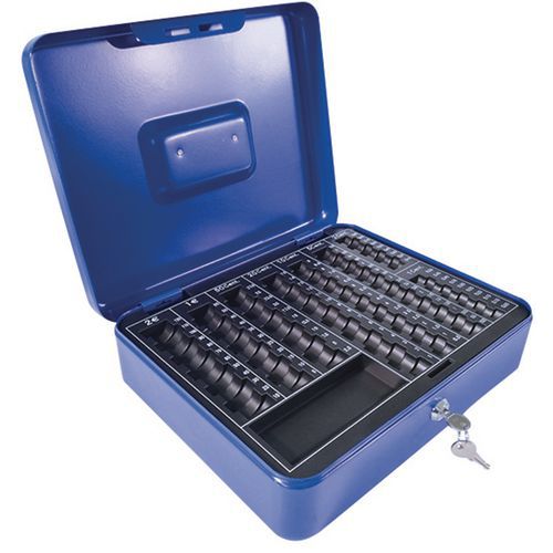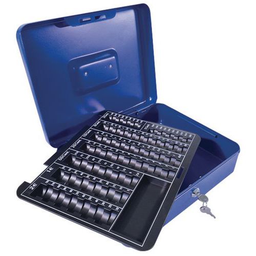 Kasetka przenośna Manutan Expert z wkładem na monety EUR, niebieska Kasetka przenośna Manutan Expert z wkładem na monety EUR, niebieska