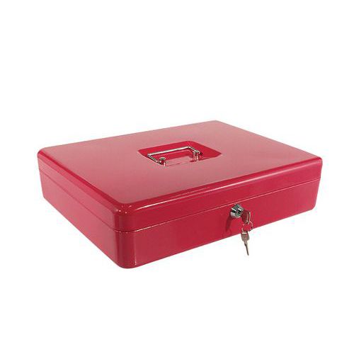 Podręczne metalowe kasetki w różnych wariantach kolorystycznych, z uchwytem górnym. Zawierają wyciągany organizer z trzema przegródkami oraz wkład na monety euro (1, 2 euro, 1, 2, 5, 10, 20 i 50 centów).