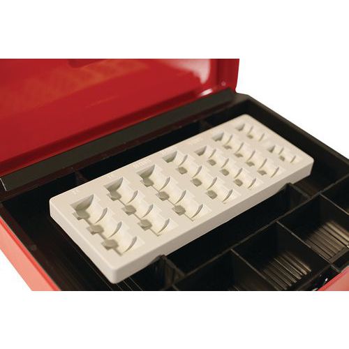 Kasetka przenośna Manutan z wkładem na monety EUR, 9 przegródek, czerwona