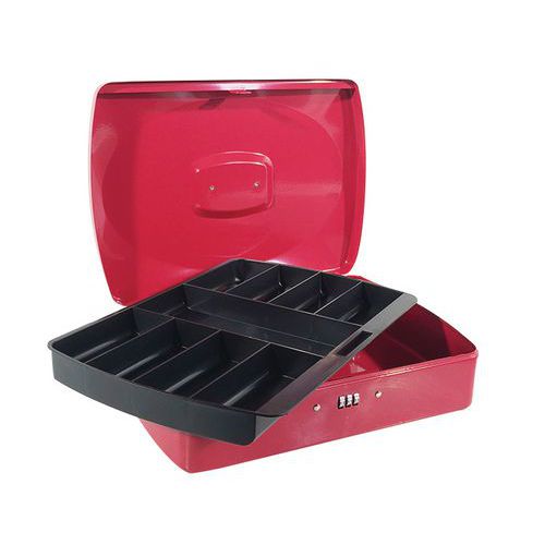 - Przenośne kasy z zamkiem szyfrowym w różnych wariantach kolorystycznych. Posiadają wyjmowaną przegrodę umożliwiającą podział na dziewięć przegródek.