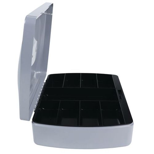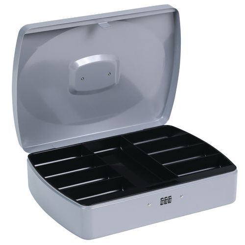 Kasetka przenośna z zamkiem na kod Manutan Expert, 9 przegródek, szara Kasetka przenośna z zamkiem na kod Manutan Expert, 9 przegródek, szara