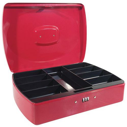 Kasetka przenośna z zamkiem na kod Manutan Expert, 9 przegródek, czerwona Kasetka przenośna z zamkiem na kod Manutan Expert, 9 przegródek, czerwona