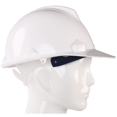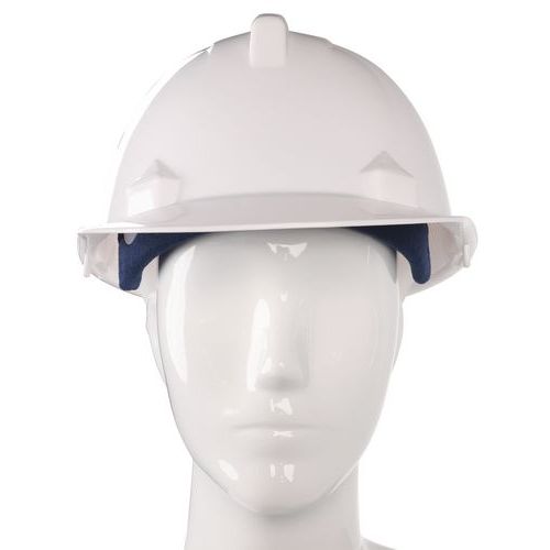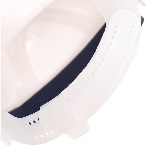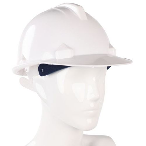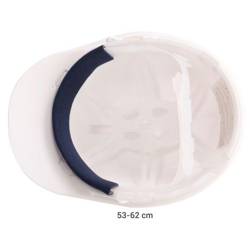Kask roboczy, z sześciopunktową więźbą plastikową i plastikowymi dodatkami.