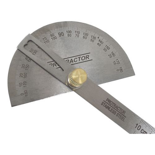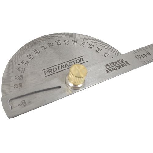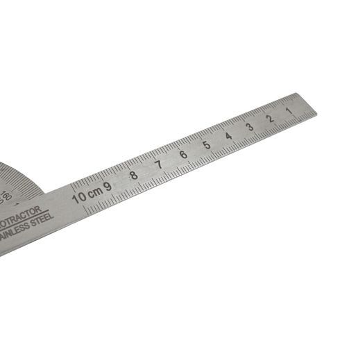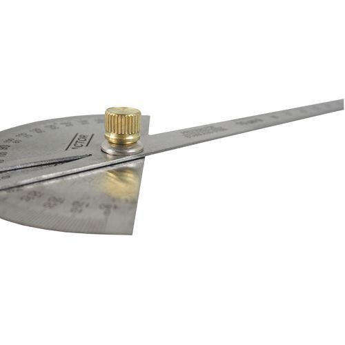 - W celu szybkiego wyznaczania kątów kątomierz wyposażono w półokrągłą tarczę z podziałem kątowym 180°.