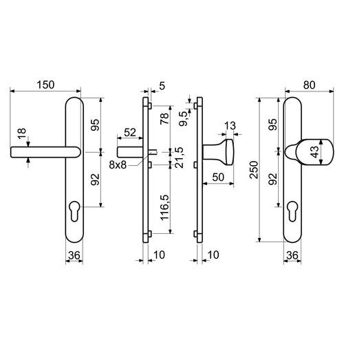 Klamka aluminiowa do drzwi plastikowych, fluorocarbon z brązu