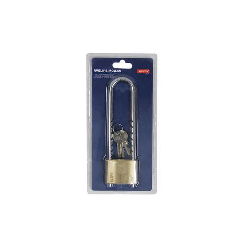 Kłódka mosiężna z drobno szczotkowaną powierzchnią, średnica pałąka 7,8 mm, wysokość 60-150 mm, mosiądz