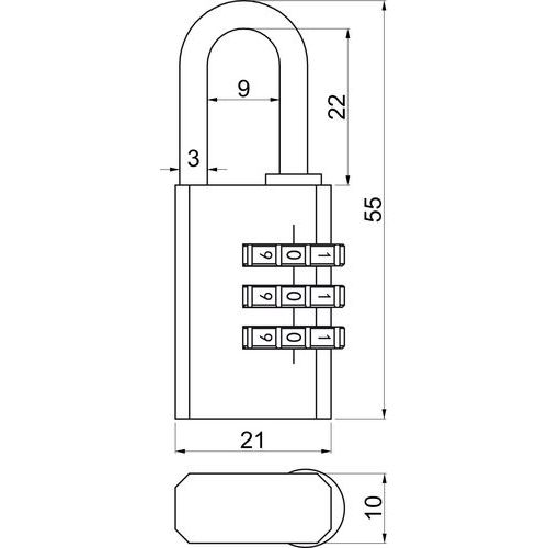 - Tysiąc (szerokość 21–28 mm) do dziesięciu tysięcy (szerokość 38 mm) kombinacji zamka.