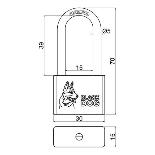 Kłódka stalowa powlekana elektroforezą, średnica pałąka 5mm, wysokość 39mm, kolor czarny
