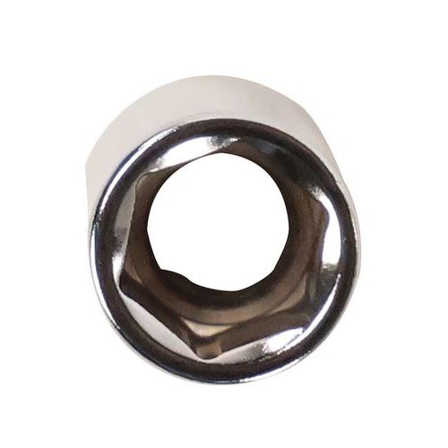 Klucz nasadowy sześciokąt z wlotem 1/4”. Materiał ze stali chromowanej z błyszczącą powierzchnią.