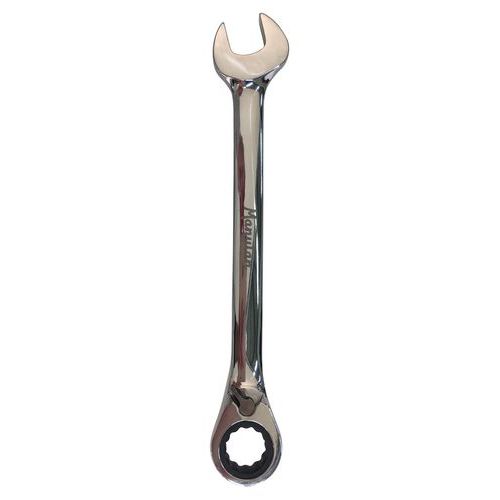 Klucz dwustronny płasko-oczkowy z grzechotką w różnych rozmiarach. Mechanizm 72 ząbki, obrót o 5°. Błyszcząca powierzchnia.