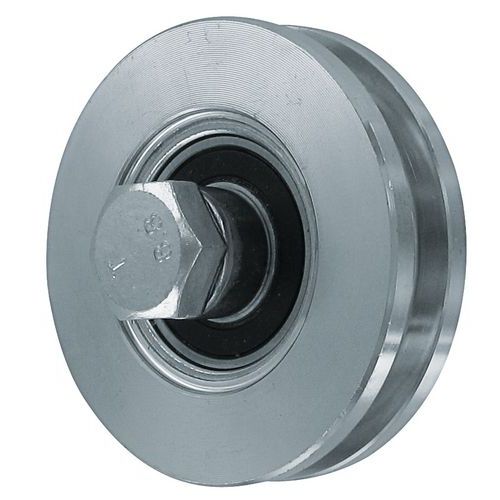 Koło ze stali ocynkowanej z prostokątnym rowkiem dla optymalnego toczenia się po szynach. Z precyzyjnie nasmarowanymi łożyskami kulkowymi zapewniającymi płynny i bezobsługowy obrót.