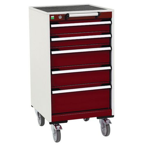 Przenośna szafka z szufladami Bott Cubio, 98,5 x 52,5 x 52,5 cm, 5 szuflad, mat, szaro-czerwony Przenośna szafka z szufladami Bott Cubio, 98,5 x 52,5 x 52,5 cm, 5 szuflad, mat, szaro-czerwony