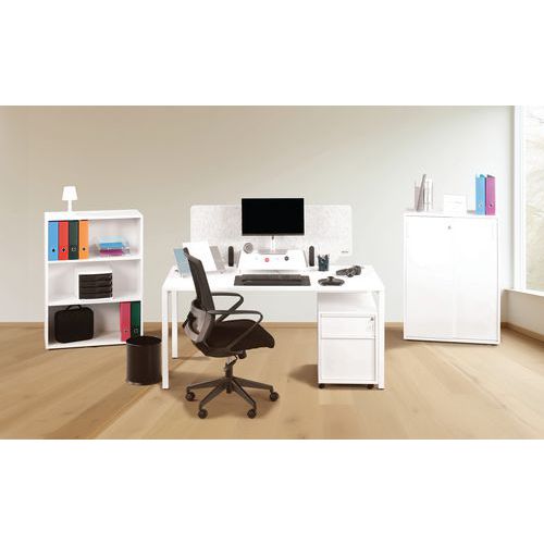 Mobilny pojemnik Misao wykonany z melaminy z krawędziami o grubości 1 mm. Dolna szuflada na teczki wiszące. Wysokość szuflady 8,6 cm, szerokość 50 cm. Szuflada na dokumenty wiszące, odpowiednia do segregatorów w formacie A4 i foilscap. Centralny zamek bez zabezpieczenia przed dachowaniem. Uchwyt wykonany z anodowanego profilu aluminiowego. Maksymalne obciążenie każdej szuflady: 25 kg. Kółka obrotowe o średnicy 37 mm. Gwarancja producenta dla klienta : 10 lat