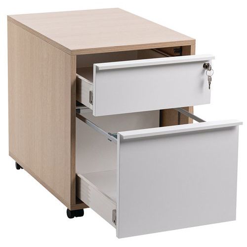 Mobilny kontener Misano, Manutan Expert, 2 szuflady, biały/dąb Mobilny kontener Misano, Manutan Expert, 2 szuflady, biały/dąb