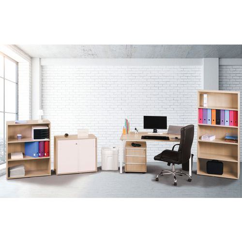 Mobilny pojemnik Misao wykonany z melaminy z krawędziami o grubości 1 mm. Dolna szuflada na teczki wiszące. Wysokość szuflady 8,6 cm, szerokość 50 cm. Szuflada na dokumenty wiszące, odpowiednia do segregatorów w formacie A4 i foilscap. Centralny zamek bez zabezpieczenia przed dachowaniem. Uchwyt wykonany z anodowanego profilu aluminiowego. Maksymalne obciążenie każdej szuflady: 25 kg. Kółka obrotowe o średnicy 37 mm. Gwarancja producenta dla klienta : 10 lat