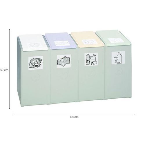 Modułowe kontenery plastikowe na odpady segregowane. Wykonane z odpornego na uderzenia poliestru w kolorze szarym RAL 7035. Możliwość wyboru wariantu z 1, 2, 3 lub 4 koszami. Łatwe opróżnianie kosza za pomocą pojemnika wewnętrznego (brak w zestawie). Możliwość uzupełnienia o podstawę mobilną oraz kolorowe pokrywy. Sprzedawane z piktogramami samoprzylepnymi do segregacji odpadów.