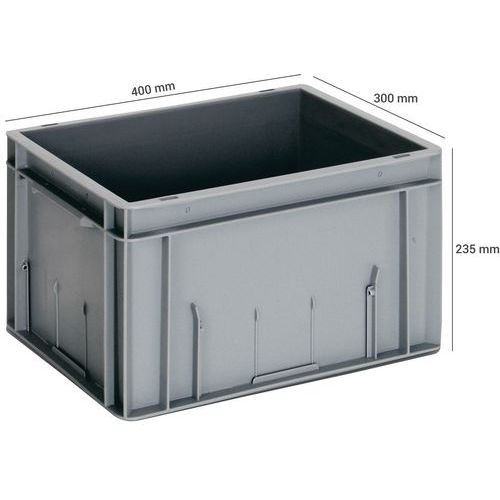 - Pojemnik transportowy spełniający europejskie standardy, z możliwością układania w stosy.