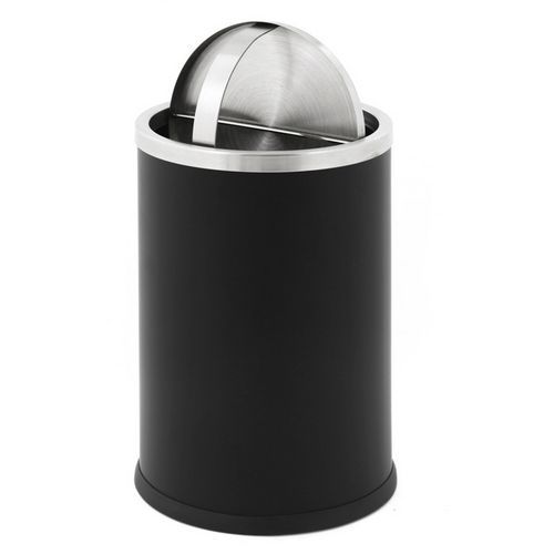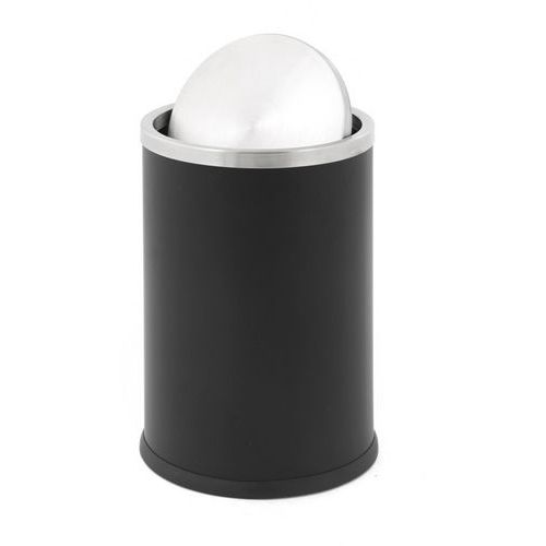 - Okrągły kosz na śmieci z pokrywą na zawiasach ze stali nierdzewnej.
