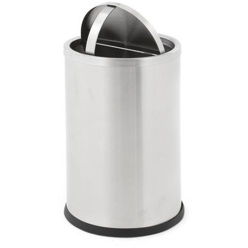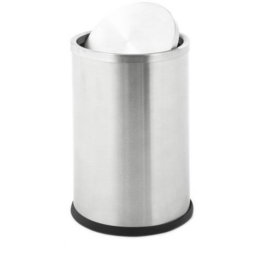 - Okrągły kosz na śmieci z pokrywą na zawiasach ze stali nierdzewnej.