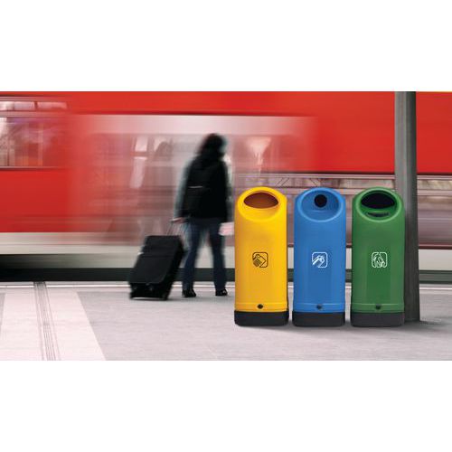 - Kwadratowy pojemnik, który może być używany jako stacja sortowania dla kilku strumieni odpadów poprzez umieszczenie kilku elementów obok siebie.