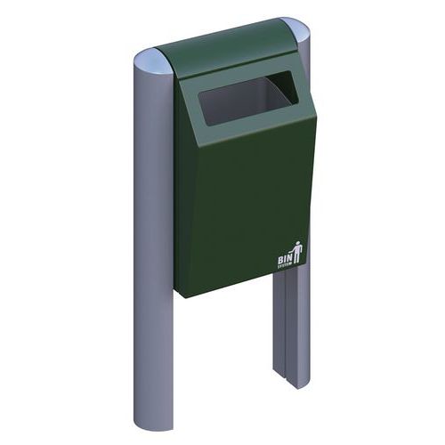 Pięknie zaprojektowany zewnętrzny kosz na śmieci wykonany z wysokiej jakości stali ocynkowanej malowanej proszkowo, z otworem wrzutowym po jednej stronie.