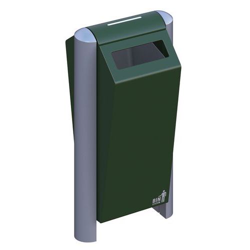 Pięknie zaprojektowany zewnętrzny kosz na śmieci wykonany z wysokiej jakości stali ocynkowanej malowanej proszkowo, z otworem wrzutowym po obu stronach.