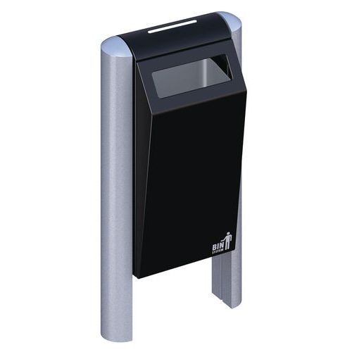 Pięknie zaprojektowany zewnętrzny kosz na śmieci wykonany z wysokiej jakości stali ocynkowanej malowanej proszkowo, z otworem wrzutowym po jednej stronie.