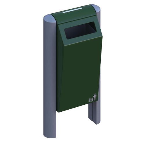 Pięknie zaprojektowany zewnętrzny kosz na śmieci wykonany z wysokiej jakości stali ocynkowanej malowanej proszkowo, z otworem wrzutowym po jednej stronie.