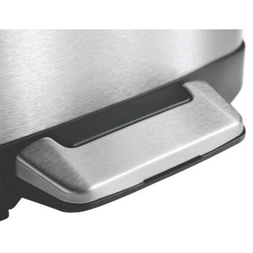 - Pojemnik na kosmetyki z pedałem z malowanej proszkowo stali z pokrywą i pedałem ze szczotkowanej stali nierdzewnej.